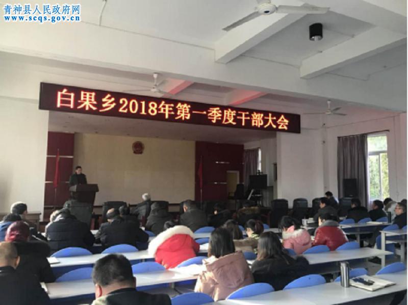 按照县委安排部署,1月8日,白果乡召开2018年度第一季度干部大会,对2017年度党组织书记党建工作述职评议工作进行了安排。乡党委要求,各村党支部党建述职工作务必务实开展,既要总结好的经验,更要坚持自查自纠,积极思考,主动改进。各支部要充分认识到党建述职评议的重要性,认真谋划好、组织好、推动好,确保全乡村党组织党建述职评议工作抓紧、抓好、抓实。