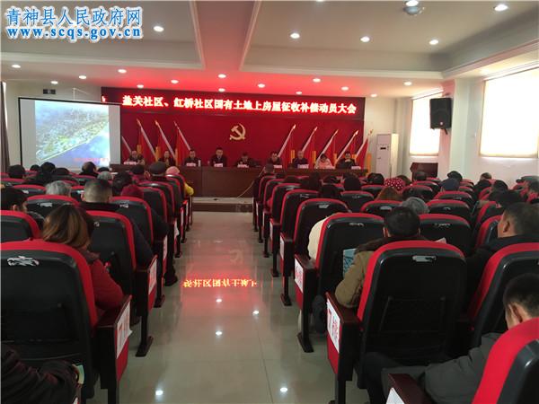 1月17日,县住建局在青城镇人民政府四楼会议室召开盐关社区、红桥社区棚户区改造涉及国有土地上房屋征收与补偿动员大会。县住建局局长刘建林、青城镇党委书记余鹏、南城镇镇长陈鑫、征收中心工作组成员及相关部门负责人出席了会议,社区居民代表等约200余人参加会议。
