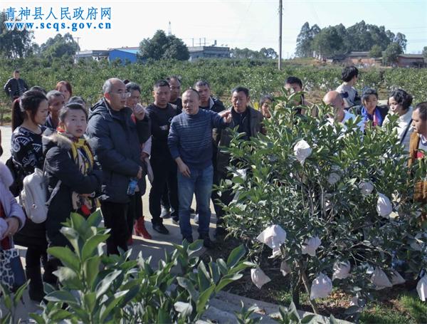 1月16日,重庆市潼南县新型职业农民培育班的90多名学员,参观学习青神县椪柑产业发展。