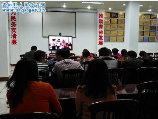 2017年11月2日我局全体干部职工在会议室集中收看了青神县第一期《阳光问廉》全媒体直播节目。