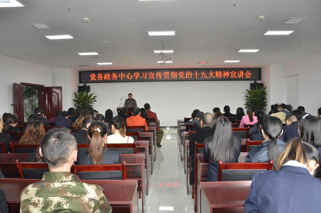 党组书记、中心主任记方青指出,传达好、学习好、宣传好、贯彻好、落实好党的十九大精神,是党务政务中心当前和今后一个时期的首要政治任务。一是要在真学真懂上下功夫,用习近平新时代中国特色社会主义思想武装头脑,指导行动。二是要在强作风上动真格,用坚持党要管党、全面从严治党的严明纪律来规范言行、杜绝庸懒散浮拖,锻造作风过硬的服务队伍。三是要在扎实干上出实招,要依法行政、深化改革,自始至终践行初心,服务发展、服务民生,同心协力,撸起袖子加油干,打造优质的服务门面。
