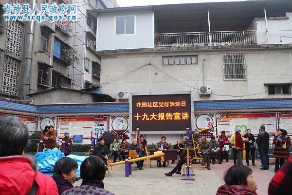 2017年12月5日上午,花园社区100余名党员、群众齐聚一堂参加社区组织的党群集中活动日。活动以不断提升社区居民的理论水平和健康意识为出发点,组织党员群众集中学习十九大报告以及开展肺结核健康知识讲座。社区 “两委”干部、社工、网格员、青城镇卫生服务中心医务人员、志愿者共同参与了活动开展。