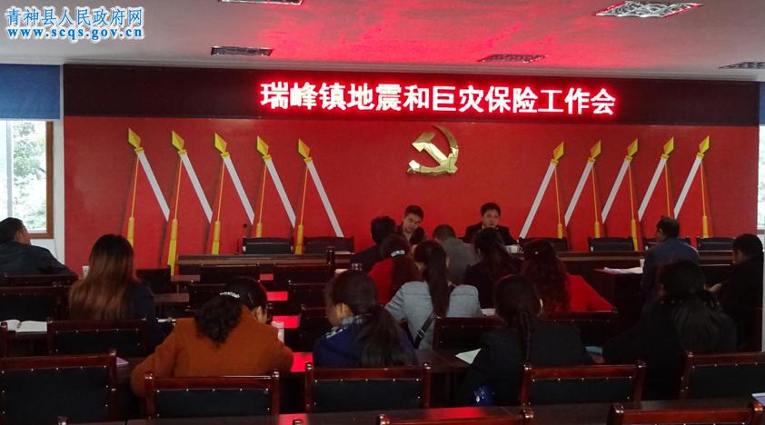 2017年11月1日,为贯彻落实青神县城乡居民住宅地震巨灾保险工作,瑞峰镇召开地震和巨灾保险工作会。全体镇干部、各村(社区)四(五)职干部参会。会议由瑞峰镇党委副书记、镇长余亚非主持。会上余亚非详细解释地震巨灾保险参保对象、缴费标准,明确了各村目标任务,并要求:一是强化认识,认真落实;二是要求各村(社区)和保险公司要密切配合,形成合力推进工作。余亚非进一步强调,地震巨灾保险能保障村(居)民财产安全,既是一件德政工程,也是一件民心工程,同时也能不断提升社会公众的自然灾害防御意识及社会防震减灾综合能力。各村(社区)要高度重视,保质保量的完成既定目标任务。