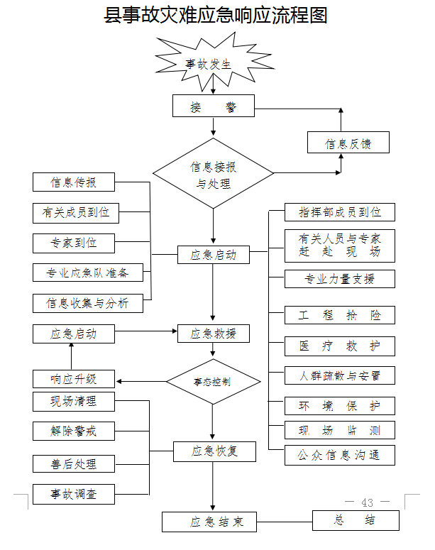 全县事故灾难应急组织体系由县、乡镇、企业3级应急组织构成,分别负责辖区内事故灾难的应急管理和处置。