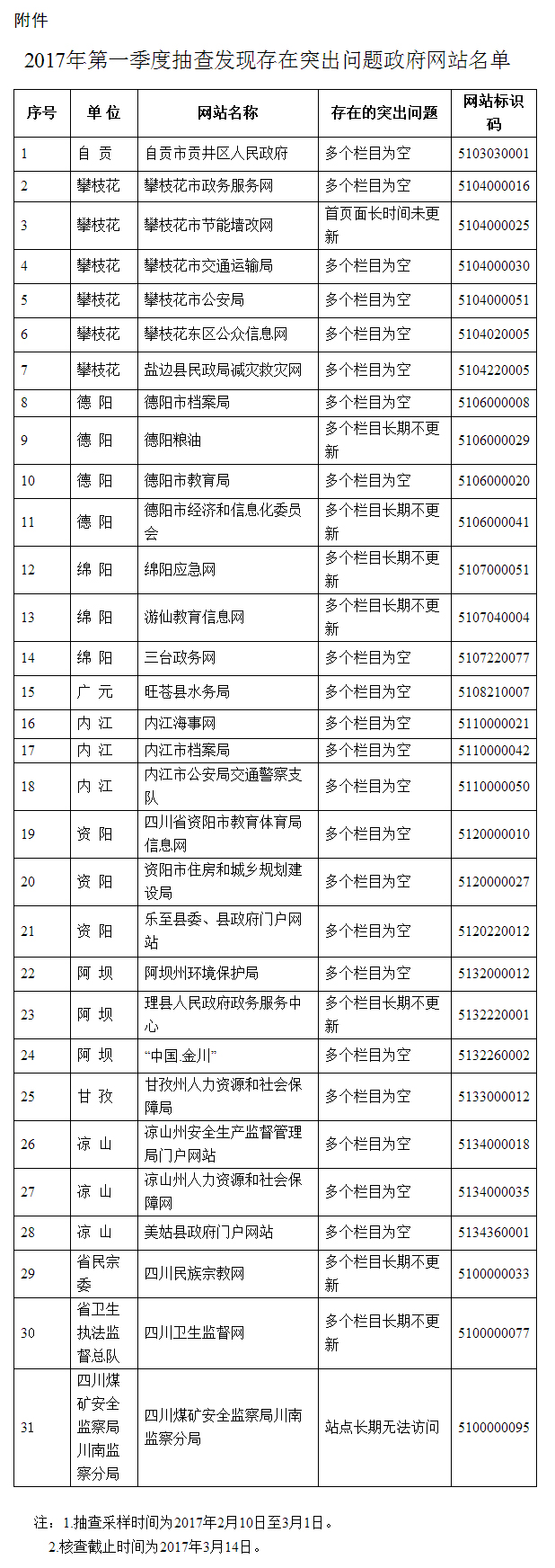 附件:2017年第一季度抽查发现存在突出问题政府网站名单