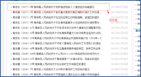 (二)“有字号的规范性文件”标题前台呈现对应效果