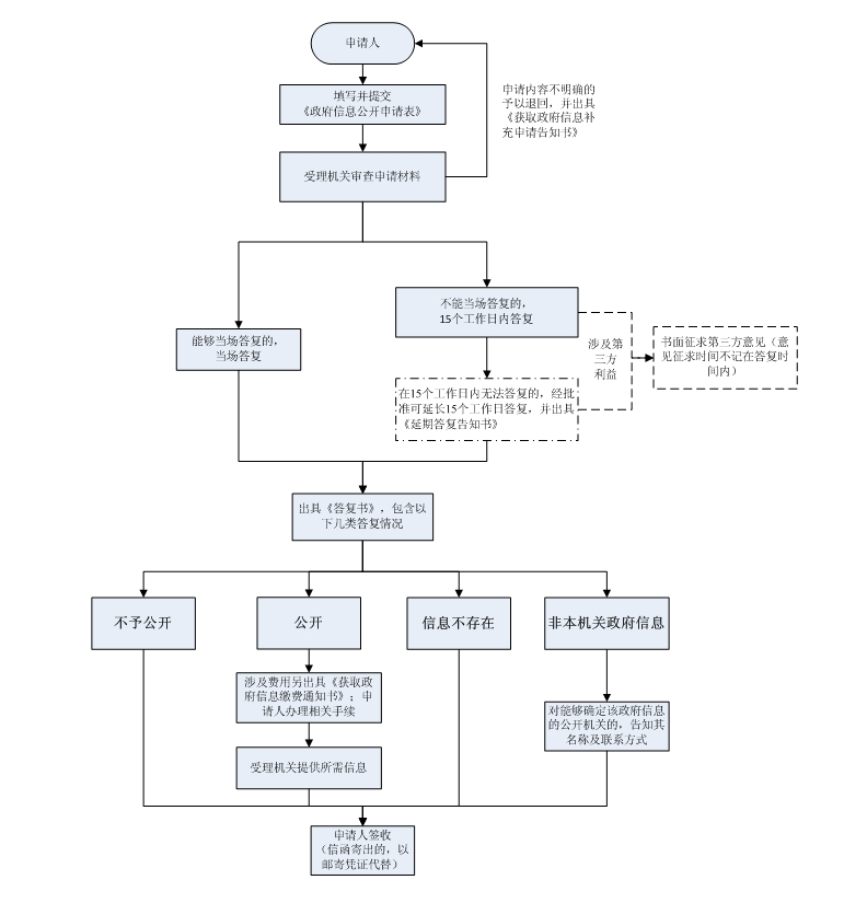 通过信函、E-mail申请。申请人通过网络下载或到受理机构领取申请表,填写后请注明“政府信息公开申请”的字样,通过信函、E-mail方式提交;当面申请。申请人到受理机构处直接提出申请。