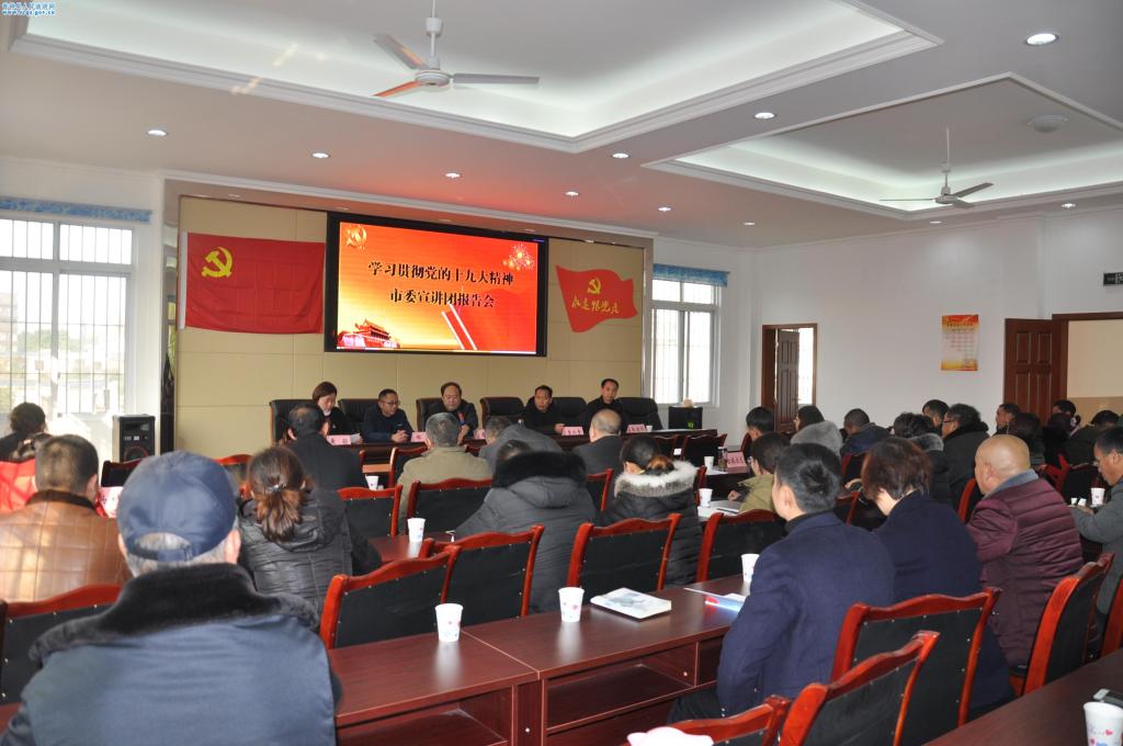 12月19日,市委宣讲团第六分团来到南城镇红桥社区进行贯彻党的十九大精神宣讲报告会,推动十九大精神在南城镇进一步落地落实。市委宣讲团成员、市委党校常务副校长李明清作宣讲报告,南城镇全体镇村干部、部分党员、群众代表共60余人参会。