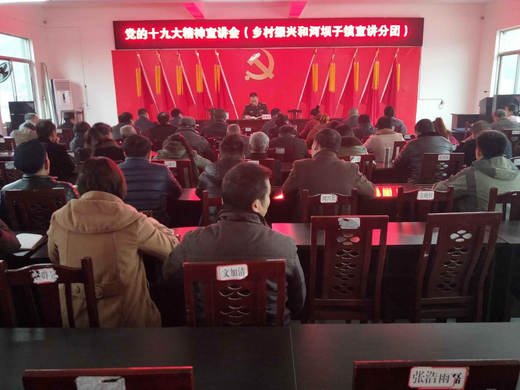 12月7日下午,青神县河坝子镇政府会议室座无虚席,学习贯彻党的十九大精神宣讲会在此举行。河坝子镇全体镇干部、村(社区)四职干部、村民小组长、党小组长等共计90余人,聆听了乡村振兴和河坝子镇分团团长郭慧兵所作的宣讲。河坝子镇党委书记邓德军主持会议。