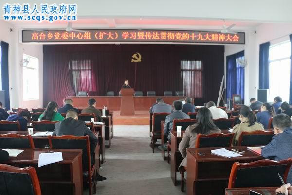 11月6日,高台乡召开党委中心组(扩大)学习暨传达贯彻党的十九大精神大会,全体乡、村干部、各支部书记共计50余人参加此次会议。