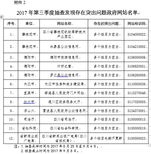 2.2017年第三季度抽查发现存在突出问题政府网站名单