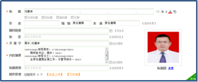 注意:标题录入时要按上面格式录入作者(个人姓名)和来源(来源单位的规范简称),编辑为系统自动录入。规范录入这三项是为了文有所属和文责自负。